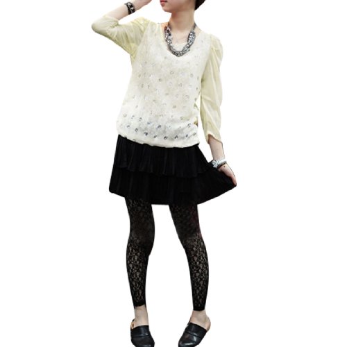 Features Burn Hole Hollow Out, Shirr 3/4 Sleeve, Scoop Neck, Lace Guipure Lining, See Through Blouse. This model is about 5.2ft in height . Lady Blouse ONLY, other accessories photographed are not included. Please check your measurements to make sure the item fits before ordering.