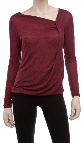 What elevates this long sleeve top nbsp its asymmetric silhouette and the fine jersey that feels luxurious on the skin Artfully draped twisted and shirred and culminating in a slight blouson hem the fabric brilliantly takes on these fluid textures This top can be worn to add some chic to your denim or add a soft contrast to structured pencil skirt Fits true to size Maxstudio
