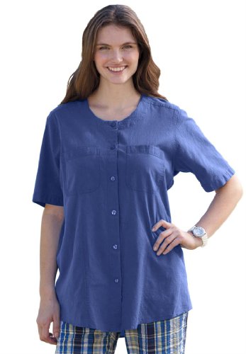 Woven crinkle cotton big shirt, proportioned in petite sizes and perfected in a wide range of colors! A flattering, easy-to-wear favorite by Only Necessities with dyed-to-match buttons, patch pockets, shirttail hem. Breezy and colorful, youll love the comfortable fit! And the crinkled cotton is just wonderful...lightweight with fantastic quality, perfectly crinkled for texture, style...and to keep wrinkles away! Paired with jeans or pants, capris or a skirt, it looks so flattering and offers great versatility. Ideal for travel, it looks so pretty right out of the suitcase...no need to fuss! Our petite plus size shirt and petite plus size top is stylish, laid back and a steal. But dont take our word for it, customers love it: This shirt came in my favorite color, a pinky lavender...it is true to the catalog or internet color. The fit is perfect and it looks crisp and comfy on. Love it! Would like it in lime green if they ever make one. Customer, Hanover, PA a nice look paired with our shorts play with proportions...try long over lean, pairing this shirt with our knit capris or stretch leggings great color choices...why not treat yourself to several! washable polyester/cotton, USA or imported 28 long: a wearable flattering length for the petite plus size woman Womens petite plus size shirts and petite plus size tops in sizes M(14WP-16WP), L(18WP-20WP), 1X(22WP-24WP), 2X(26WP-28WP), 3X(30WP-32WP), 4X(34WP-36WP), 5X(38WP-40WP)