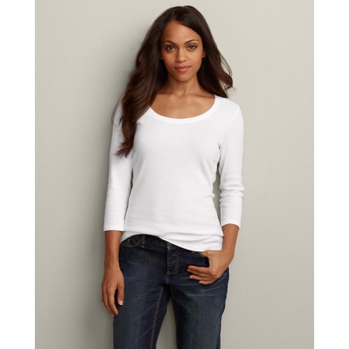 - Eddie Bauer Pima Cotton Jersey 3/4-Sleeve V-Neck T-Shirt